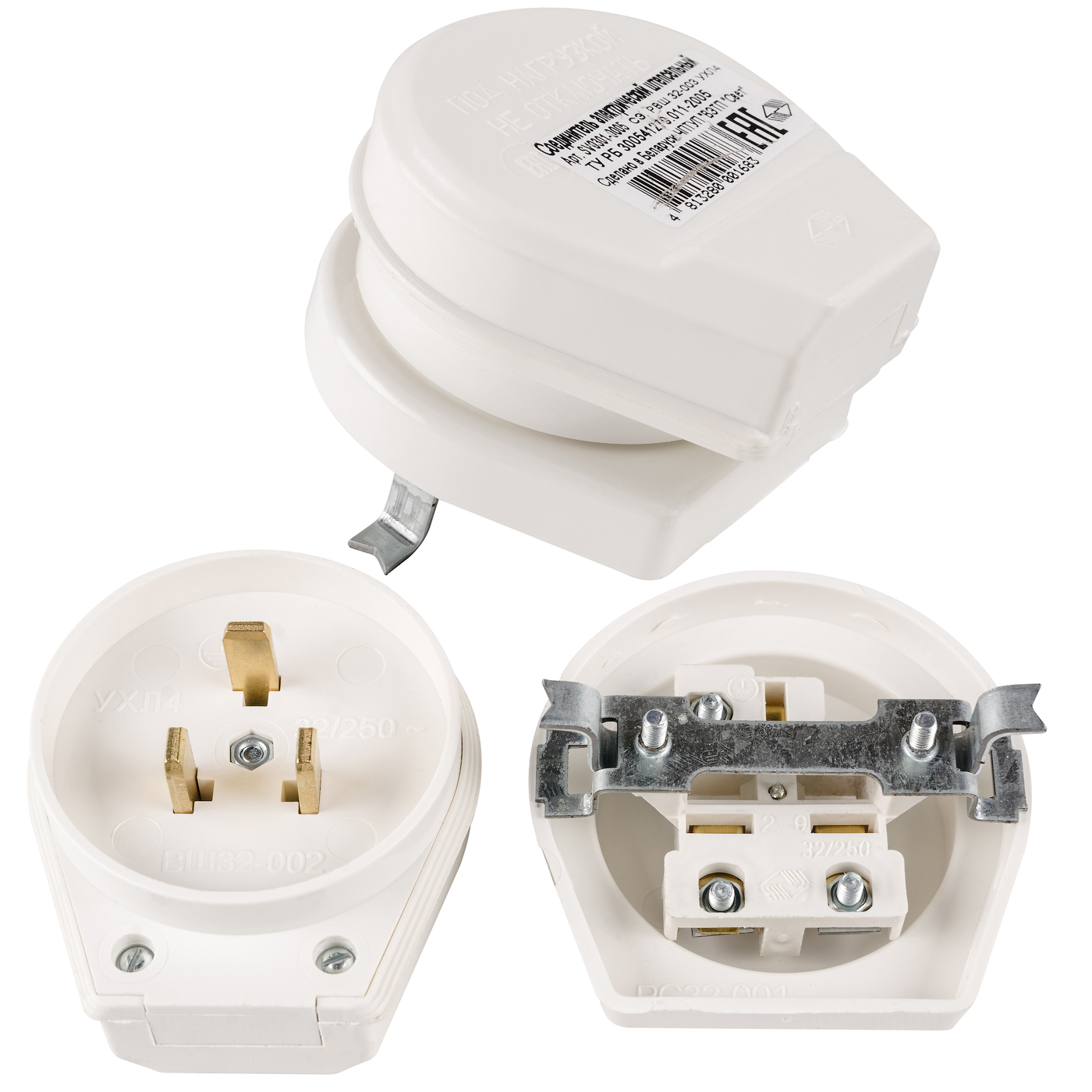 Разъем РШВШ Белтиз 3-х штырьковый встраиваемый 220В 32 А пластик